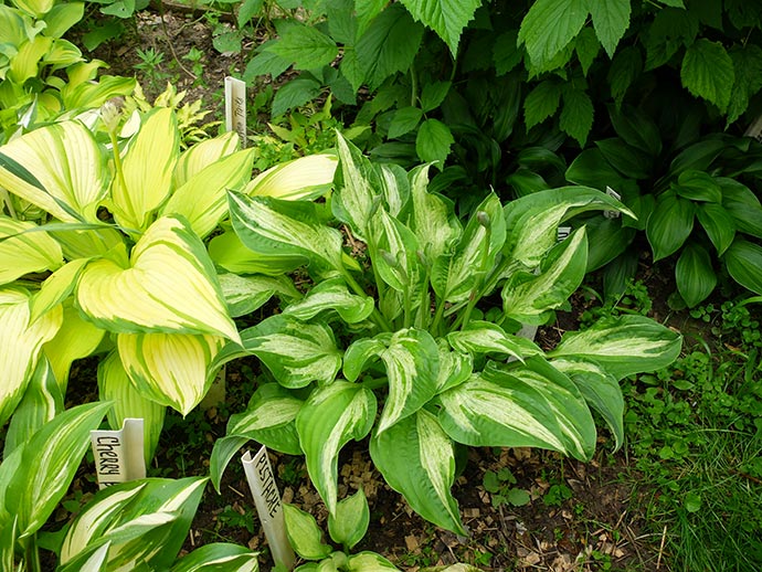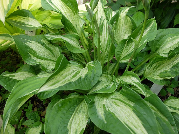 Если почва хорошо подготовлена (компост, органика), подкормка не обязательна. Но для более интенсивного роста и яркой вариегации внесите однократно в конце апреля или начале мая сбалансированное медленнодействующее удобрение с примерно равными долями NPK (например, 10–10–10 или 12-12-12) по инструкции. Жидкие удобрения рискованны, так как они действуют быстро, и при частом применении их легко передозировать. Вообще, переудобрение хост ведёт к потере вариегации (листья становятся более зелёными и крупными, теряется эффект пестроты). Лучше недокормить, чем перекормить.