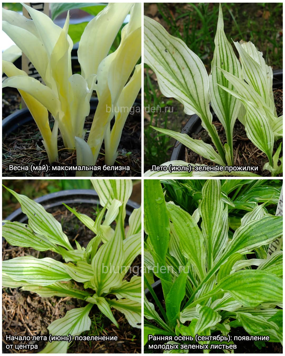 Позеленение — это естественный процесс виридесцентности. Белые листья не содержат хлорофилла и постепенно развивают зеленые участки для фотосинтеза. У «Зебра Принт» этот процесс очень декоративен — зелень распространяется от центра по жилкам. Замедлить позеленение можно размещением в прохладном месте с утренним солнцем, хотя это и не рекомендуется жертвовать здоровьем хосты в угоду красоте.